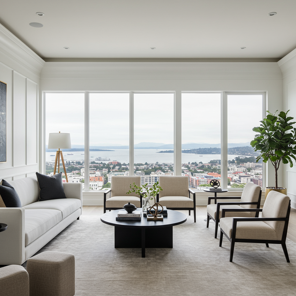 A four-bedroom view home in an upscale Pacific Heights building, doorman included.