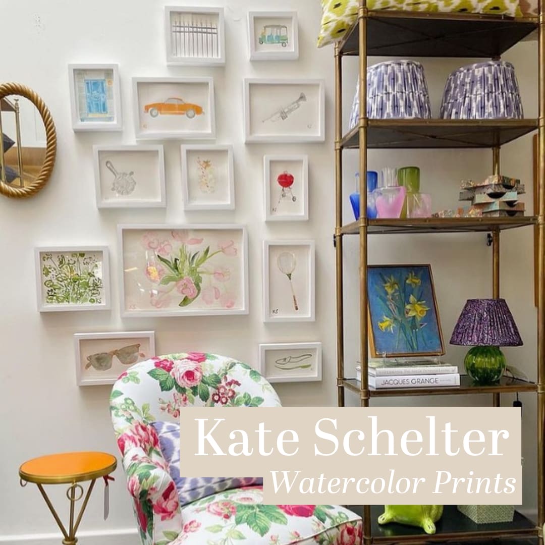 Classic Style while I was traveling in Seaside, Florida. I read it cover to cover and fell in love with her simple yet playful illustrations. Just a few weeks ago I learned about a flash sale on her watercolors and I went to TOWN. I snagged a classic wayfarer, the Jeep Wagoneer, a blue and white stripe print, and - my ultimate - the LL Bean tote. My living room has been transformed with these watercolors at the center, and I couldn’t be happier. Check out her site and let me know what you think.